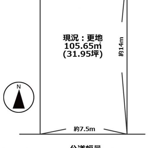 - 間口約20m超の売り土地!道路から平坦な整形地!前面道路幅約10mあり。