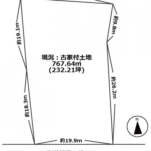 - 間口約20m超の売り土地!道路から平坦な整形地!前面道路幅約10mあり。