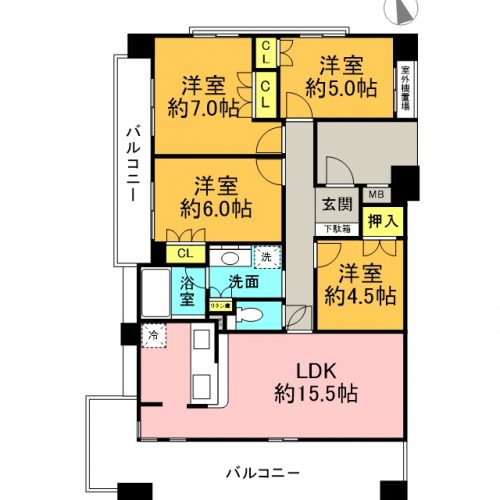 - 専有面積87.53㎡・4LDK(LDK約16.2帖)。南西向きの角部屋につき陽当たり、通風良好。閑静な住宅街にあるマンション。周辺にはお買物施設や公園なども近く住環境に優れています。